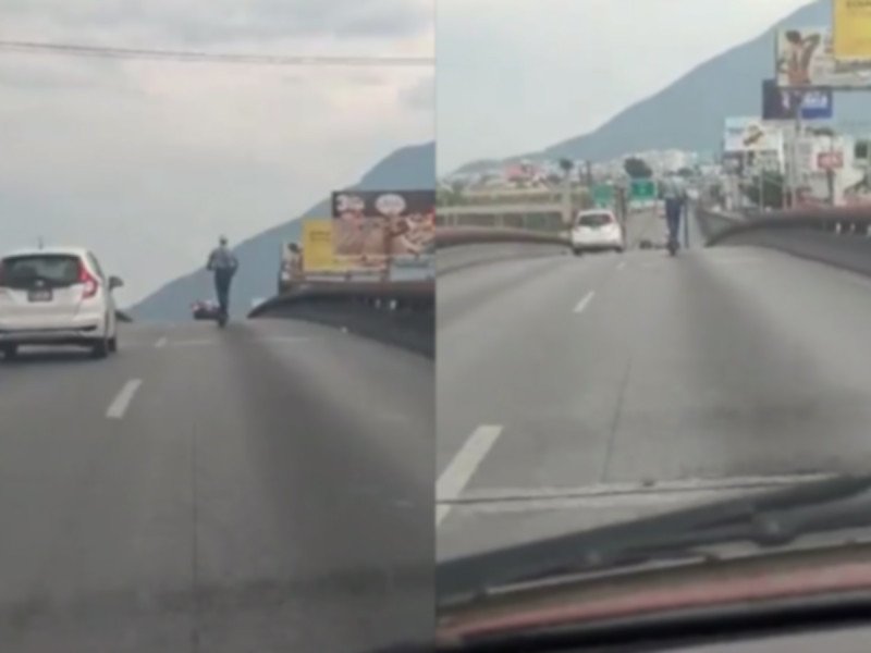 Según el usuario de redes sociales que grabó dicho video, el joven iba en el carril de alta velocidad, por lo que lo iba “escoltando” para que no lo fueran a atropellar, debido a que tomó la avenida como si fuera pista del Parque Fundidora.
